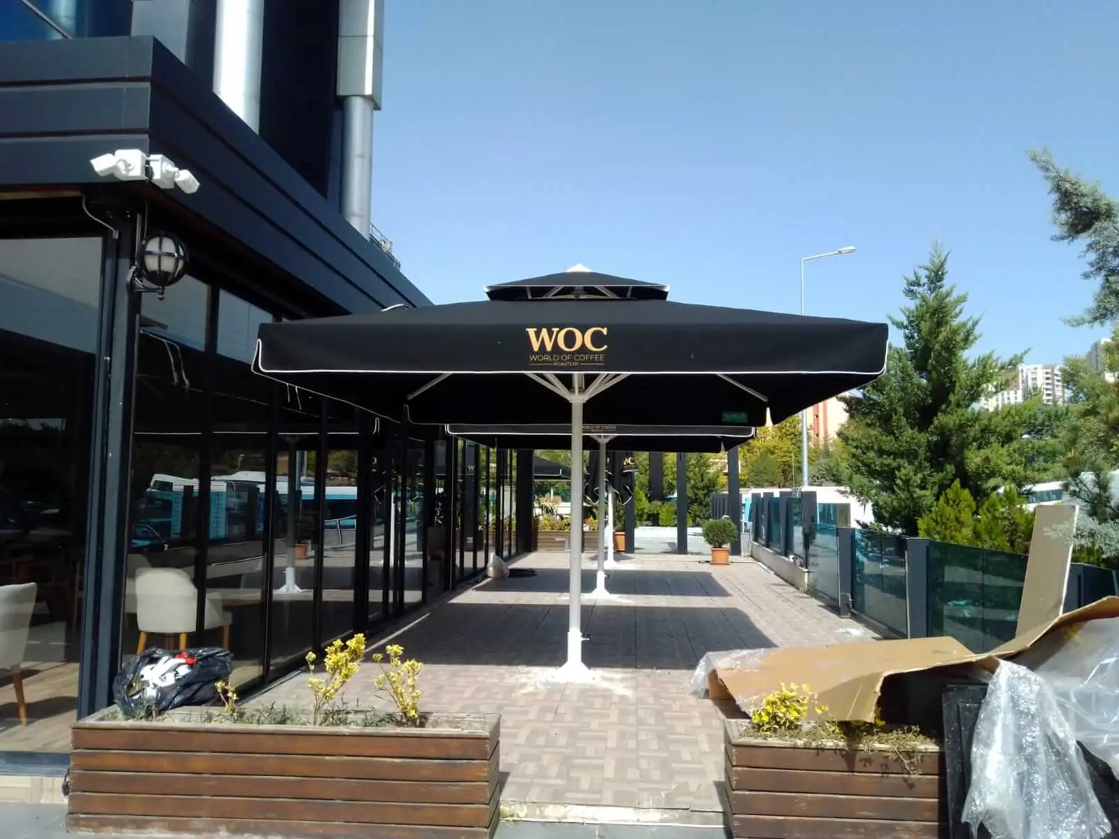 Ayrıca markanıza özel logo baskılı şemsiye tasarımlarımızla, işletmenizin dış alanlarını sadece gölgelendirmekle kalmayıp aynı zamanda reklam alanına da dönüştürebilirsiniz. Cafe ve restoranlarda müşterilerinize konforlu bir ortam sunarken, markanızın görünürlüğünü de artırabilirsiniz.